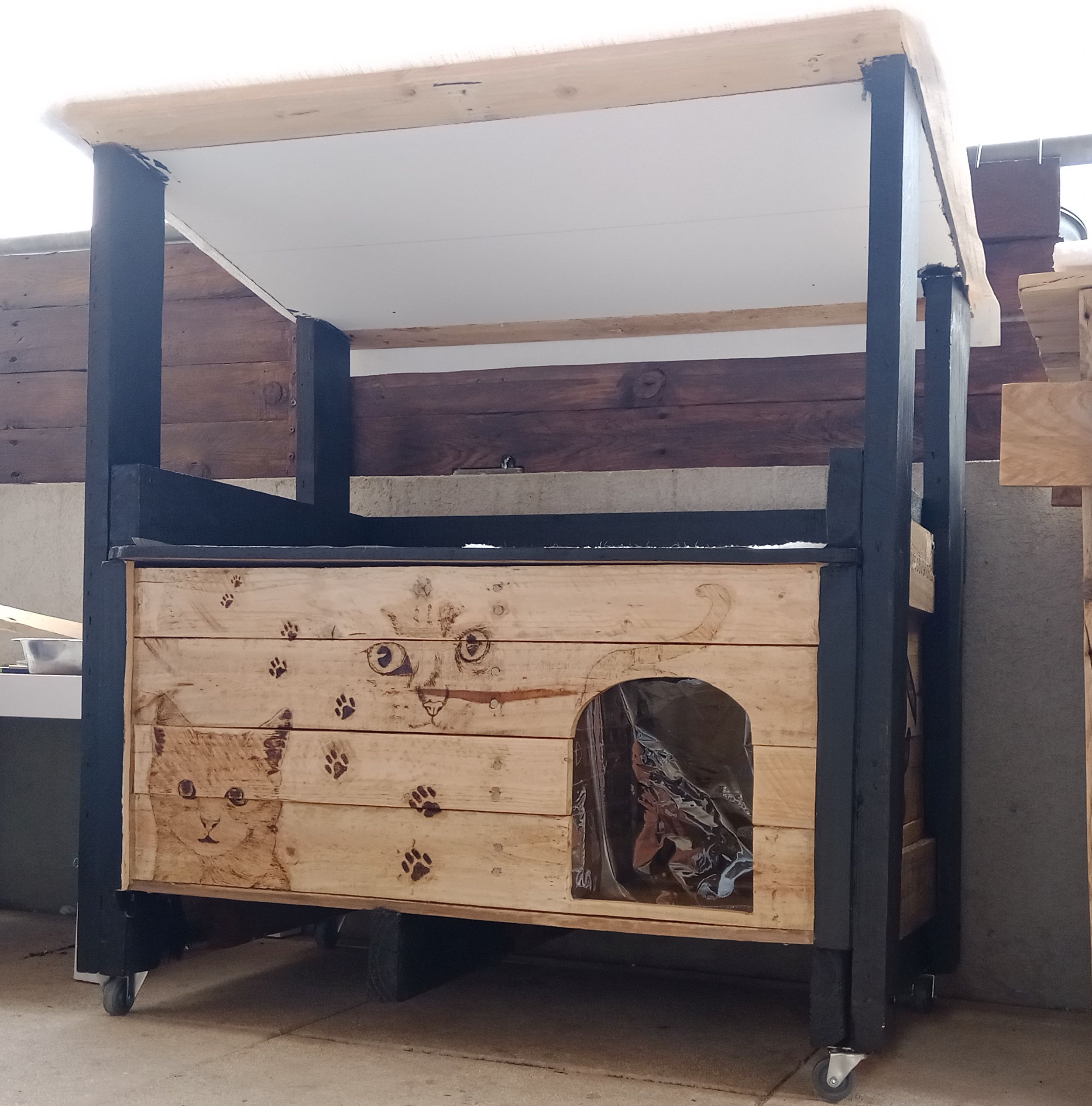 Niche avec terrasse abritée pour les siestes à l'abri du soleil en été. Entrée déportée anti-vent. Rideaux, protection de toit et de terrasse amovibles, accès intérieur facile par l'arrière pour le nettoyage.